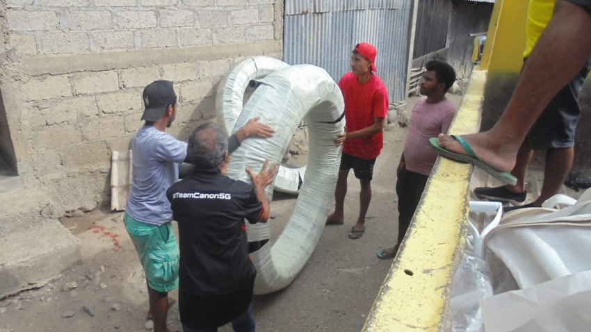 In the aftermath of the flood, this community’s main priority was fixing their water supply. It was a simple above ground pipe system that transferred water from an underground spring on a hill in the bush, down to several public tap stands on the main road where families then collected water to carry to their homes. When the flood waters came through, most of the existing water system was washed away, leaving these families with no water supply for washing and cooking.