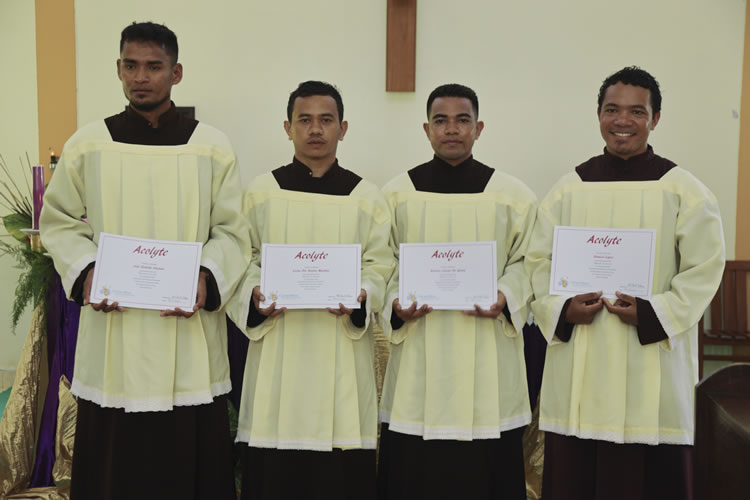 During Mass on Sunday 4 December at St Elias Community in Hera, Timor-Leste, 6 young Carmelites received the ministry of Lector (Brs Calisto, Pedro, Zebedeu, Aleixo, Donanciano & Gaudencio) and 4 received the ministry of Acolyte (Brs Samuel, Joao Caunan, Jonias and Lucas).