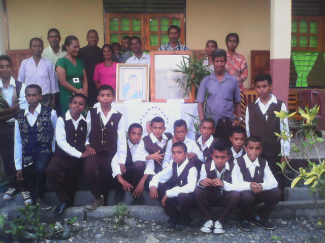 At present there are 13 boys resident in the boarding house - 2 brothers from the Carmelite Sisters orphanage at Maubara, 2 other brothers from a family in Dili and 9 boys from various places in the Zumalai parish.