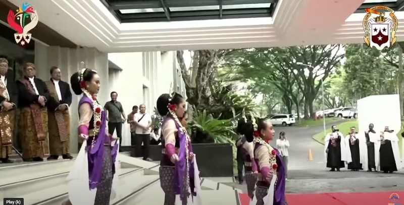 The members of the Carmelite General Chapter gathered at the front entrance to the Harris Hotel in Malang, Indonesia to be officially welcomed to Indonesia and the Chapter. The prior provincial, Franciscus Xavier Hariawan Adji and members of his council wearing traditional Javanese dress, offered words of welcome.