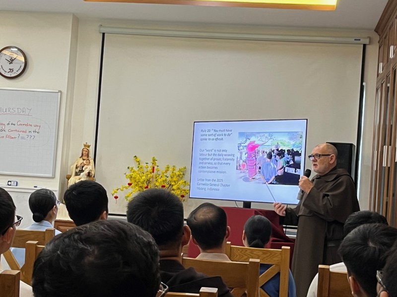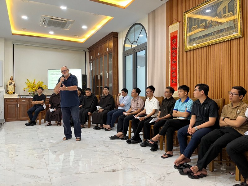 ‘Allowing a contemplative heart to be formed in us’ was the topic of a 2-day workshop for our 6 Carmelite novices. This was followed by a 4-day workshop on the Carmelite Rule for 40 professed Carmelites and their formators, together with 4 Donum Dei sisters and one Missionary sister of St Thérèse. Carmelite nuns in Vung Tao and Bing Trieu attended the workshop via Zoom. Later, they had the opportunity to meet Fr Wayne in person and to discuss his presentation.