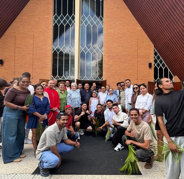 With open arms and hearts, they welcomed Rogerio Araujo Mendonca, Timorese Secretary of State for Vocational Training and Employment, and a delegation of officials from the Timorese government and the Australian Embassy in Dili, to the celebration of Mass. In Australia to collaborate for continued improvement of the Pacific Australia Labour Mobility (PALM) scheme, the group came to Mt Carmel along with many Timorese from around South Eeast Queensland.