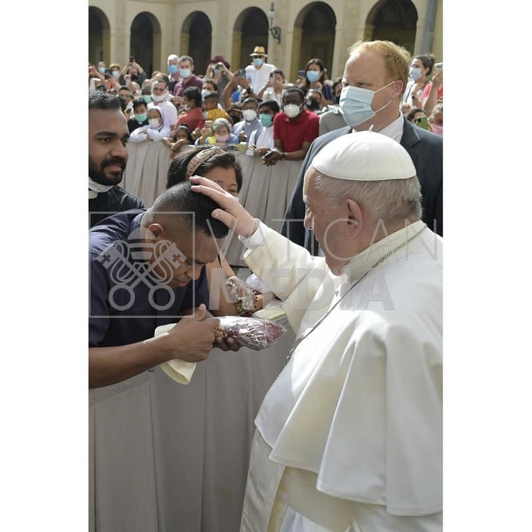 Last Wednesday, Fr Carlito, a Carmelite from Timor-Leste, went to the audience with the Holy Father and had the opportunity to meet the Pope. “When the Holy Father went by I asked him to bless and pray for me, my family and God’s people in my country. The Holy Father asked me, ‘Where are you from?’ I replied that I am from Timor Leste and the Holy Father said to me, ‘Keep your faith, you are still young, pray diligently and do the best in your study.’” Then the Holy Father put his hands on my head and blessed me,” Fr Carlito said.