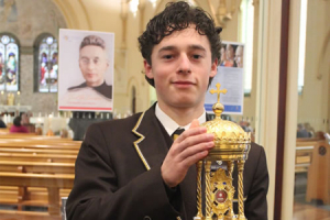 Carmelites, Lay Carmelites, parishioners, students, parents and staff from Whitefriars College, and those for whom Titus Brandsma holds a special place in their lives, gathered at the National Shrine of Our Lady of Mount Carmel, Middle Park (VIC), yesterday (31 July) for a Thanksgiving Mass celebrating his Canonisation. Students from Brandsma House at Whitefriars College joined the Entrance Procession carrying the relic of Titus Brandsma, the Brandsma House banner and a typewriter and camera. Joel Savy, House Vice Captain welcomed the assembly and gave a personal reflection on Titus Brandsma at the beginning of Mass. Students, staff and parishioners shared the readings and Prayers of the Faithful. Fr Paul Cahill (Prior Provincial) presided. In his homily, Fr Paul called Titus Brandsma, 'a gift to the world, the Church and the Carmelite Order'. "Throughout his life, whilst exercising and sharing his intellectual gifts through his studies and his teaching, preaching and writing, he was also down to earth, connected with people in their everyday struggles, and keen to assist them in whatever practical ways that he could," Fr Paul said.