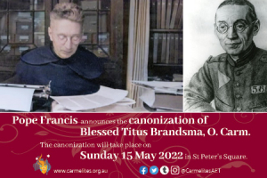 Pope Francis has announced that Blessed Titus Brandsma, OCarm, will be canonised on Sunday 15 May 2022 in St Peter's Square. The announcement came during a Consistory (meeting of Cardinals and the Pope) in Rome yesterday. Brandsma was among 3 other Blesseds approved for canonisation at the Consistory.